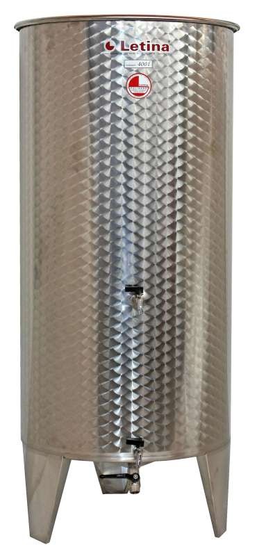 Nerezová nádrž pro uskladnění vína.